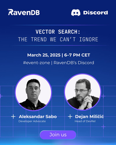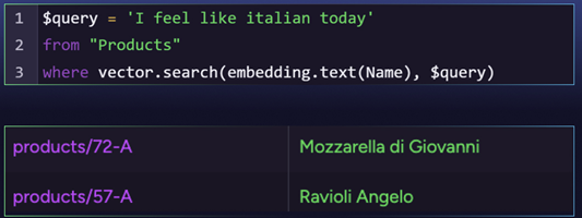 In version 7.0, RavenDB introduced vector search, enabling semantic search on text and image embeddings.For example, searching for "Italian food" could return results like Mozzarella & Pasta. We now focus our efforts to enhance the usability and capability of this feature.
