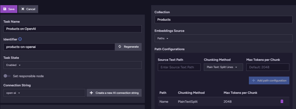 Next, we need to define an Embeddings Generation task, which looks like this: