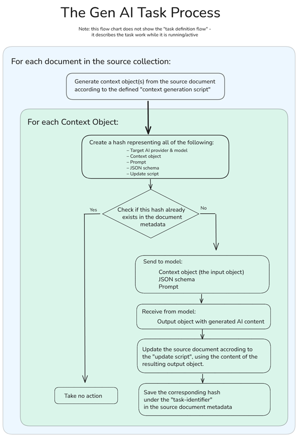 When you run the Gen AI Task, RavenDB stores a hash representing the work done by the task in the document’s metadata. If the document is modified, we can run the context generation script to determine whether we need to go to the model again or if nothing has changed from the previous time.